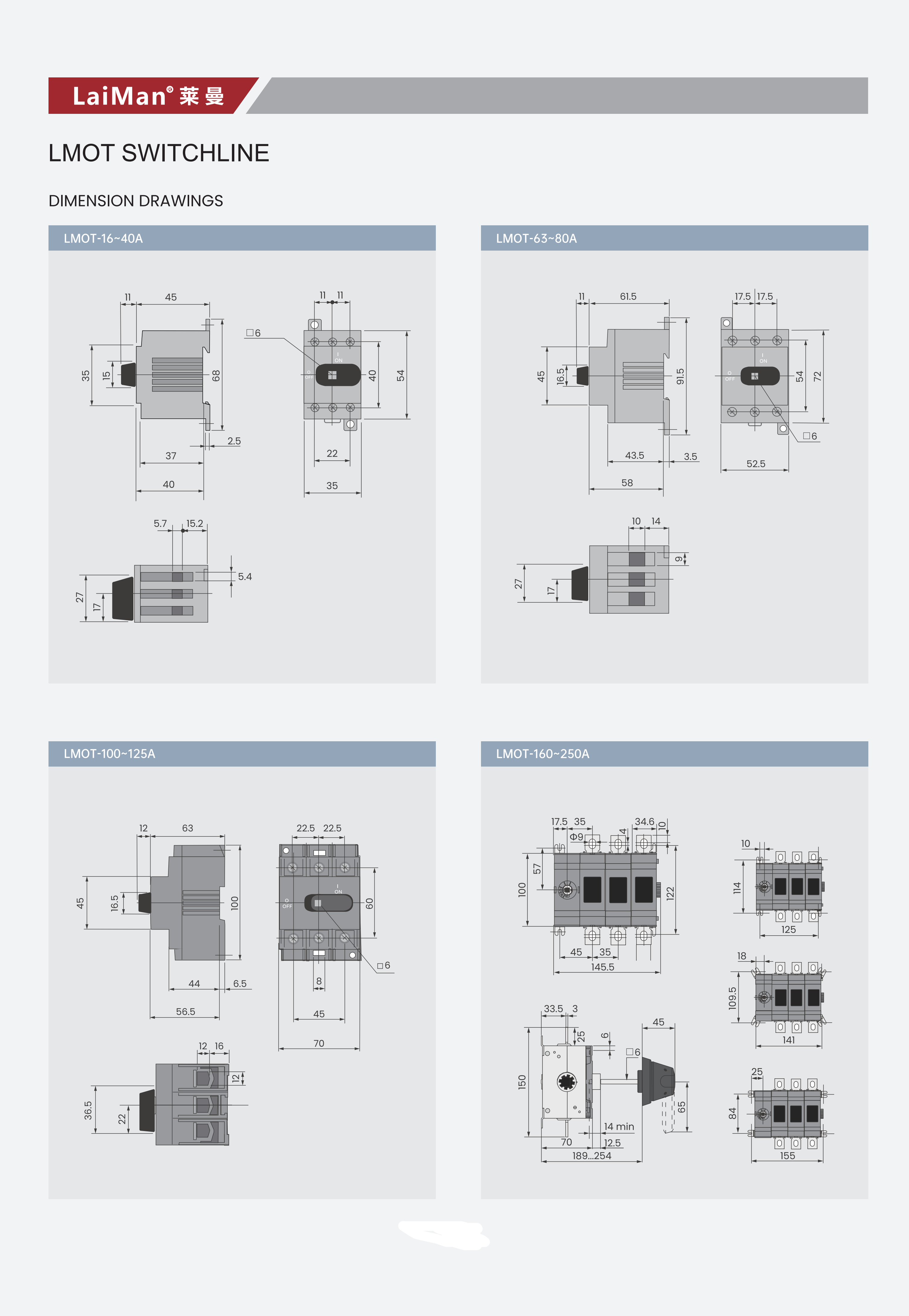 LMOT系列負荷隔離開(kāi)關(guān),適用于交流50Hz、額定電壓交流690V、直流440V,約定發(fā)熱電流至4000A的成套配電裝置中。帶有滅弧室的隔離開(kāi)關(guān)開(kāi)關(guān)用作手動(dòng)不頻繁接通與分段負載電路。開(kāi)關(guān)造型美觀(guān),新穎簡(jiǎn)單,操作方便,而且正面帶有觀(guān)察窗,可直接查看觸頭位置。