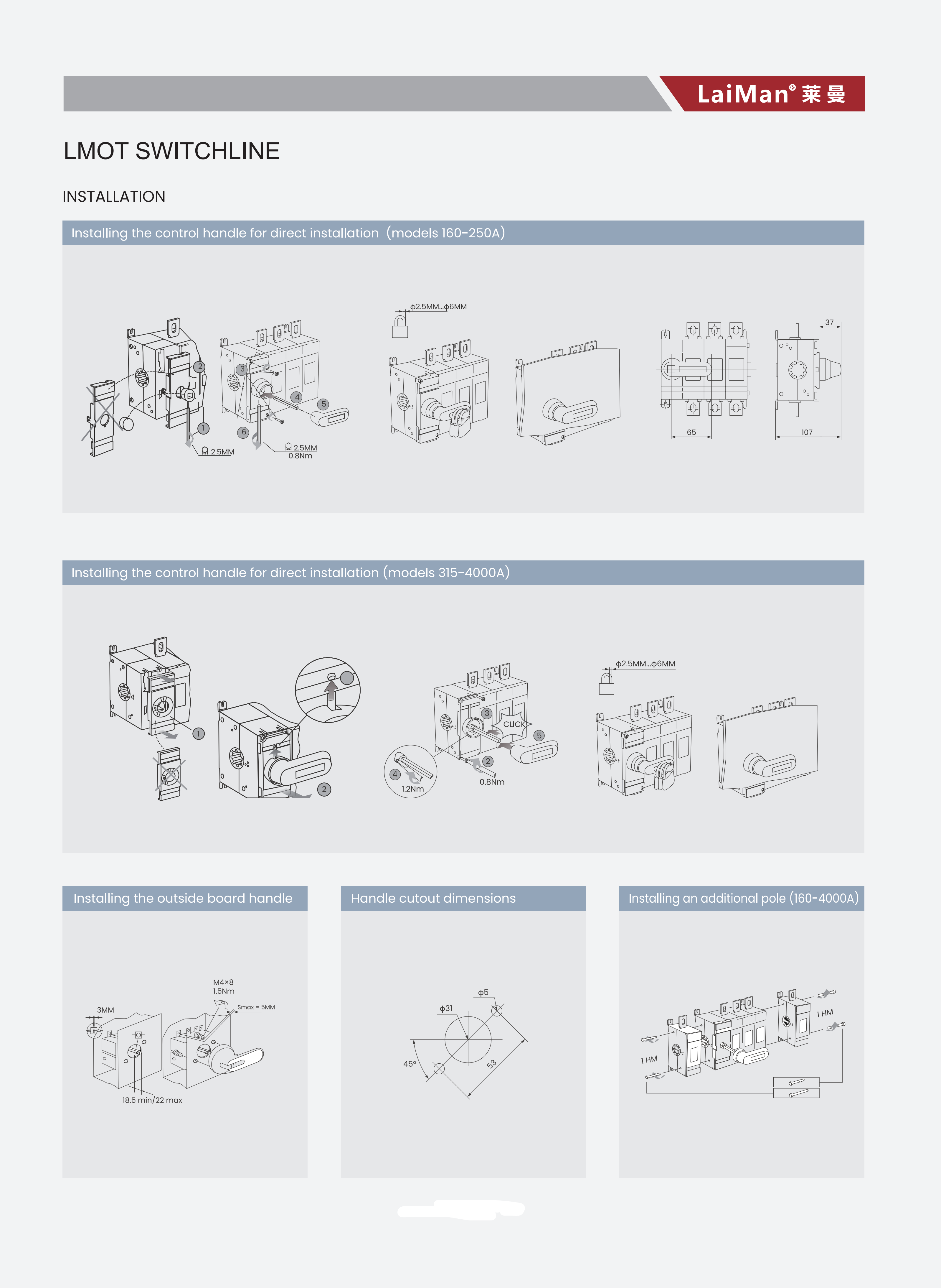 LMOT系列負荷隔離開(kāi)關(guān),適用于交流50Hz、額定電壓交流690V、直流440V,約定發(fā)熱電流至4000A的成套配電裝置中。帶有滅弧室的隔離開(kāi)關(guān)開(kāi)關(guān)用作手動(dòng)不頻繁接通與分段負載電路。開(kāi)關(guān)造型美觀(guān),新穎簡(jiǎn)單,操作方便,而且正面帶有觀(guān)察窗,可直接查看觸頭位置。